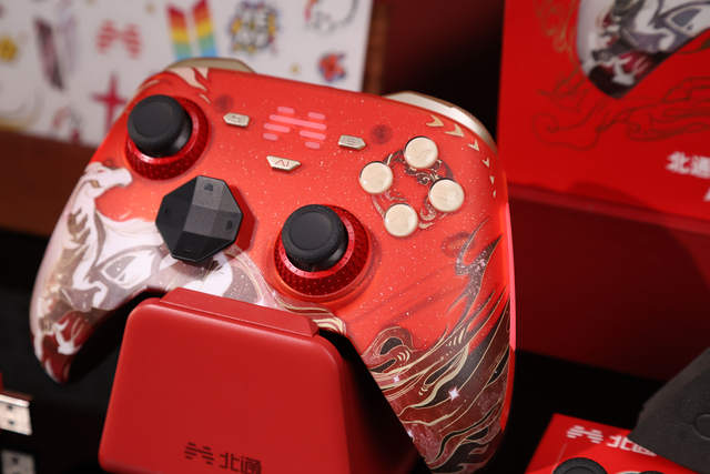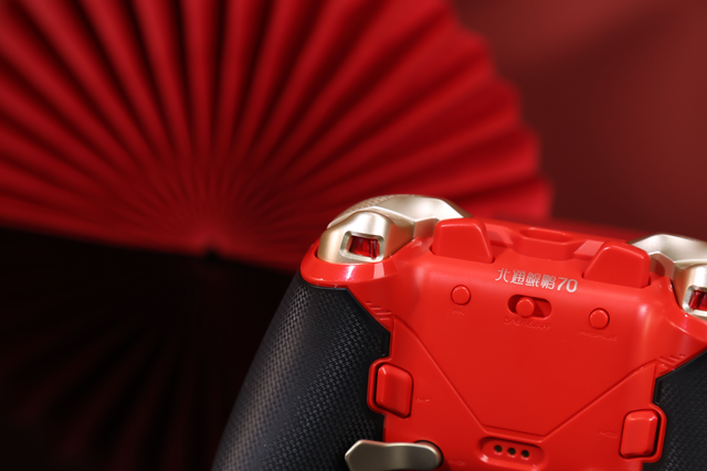 当然除了包装亮点外,在手柄外形方面,北通鲲鹏70马年新春限定款采用中国红配鎏金再加上墨黑元素,中国风拉满。