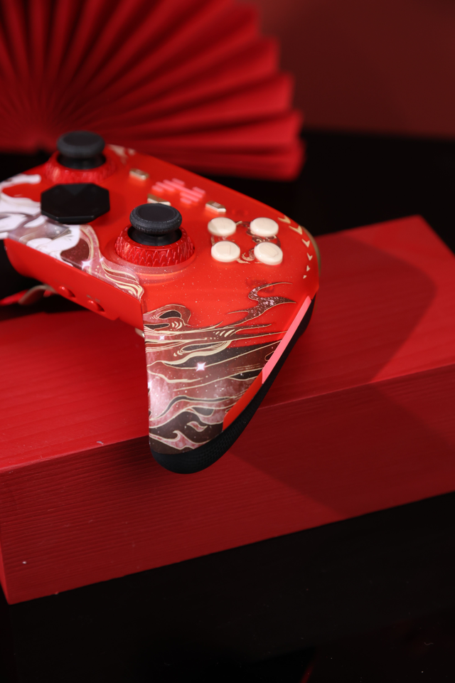 而在细节设计上,手柄外壳的奔马纹样、技能按键的祥云元素再加上摇杆阻尼环上的明亮金属红,拆开礼盒那一刻很明显就能感受到,它不是普通版本,而是偏收藏级的限定。