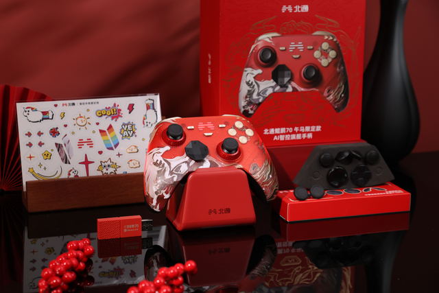 北通鲲鹏 70 马年新春限定礼盒,不只是一款性能强悍的游戏手柄,也是一件有寓意、有情绪价值的新春好物。中国红象征新年的好彩头,奔马设计承载着“马力全开”的祝愿,而 AI 触觉反馈与双切扳机,则重新定义了旗舰手柄的操控体验。如果你希望在新的一年里,游戏还是生活,都能更专注、更投入,这款限定手柄,确实是一个不错的起点。