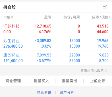 操作;卖出汇纳科技,持股众生药业。康芝药业