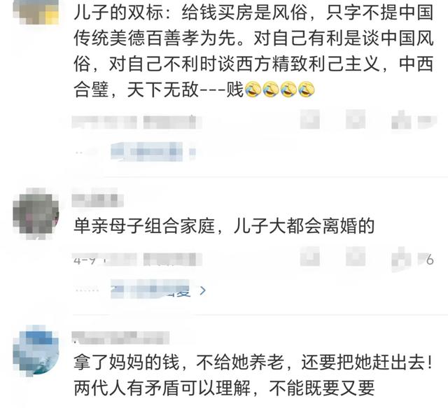 4、和母亲只谈利已主义,不提百善孝为先。拿了母亲的钱,却又要把她赶出去。这太不合适了!