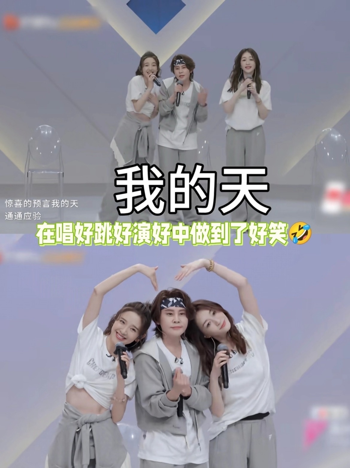 面对直播无修音的高压赛制,王濛将体育竞技的狠劲注入排练:她用秒表卡舞蹈动作精度,手绘战术图解走位,甚至自创“夹嗓子唱甜歌”训练法。李小冉则设计三连手部Pose化解舞蹈短板,唐艺昕用甜笑wink弥补高音不足。三人夜宵谈心时,王濛自曝“日均训练12小时,动作拆解到肌肉记忆”,却仍因记混歌词在彩排时唱出“我的天”等感叹词,被网友戏称“不像歌词像纯感叹”。