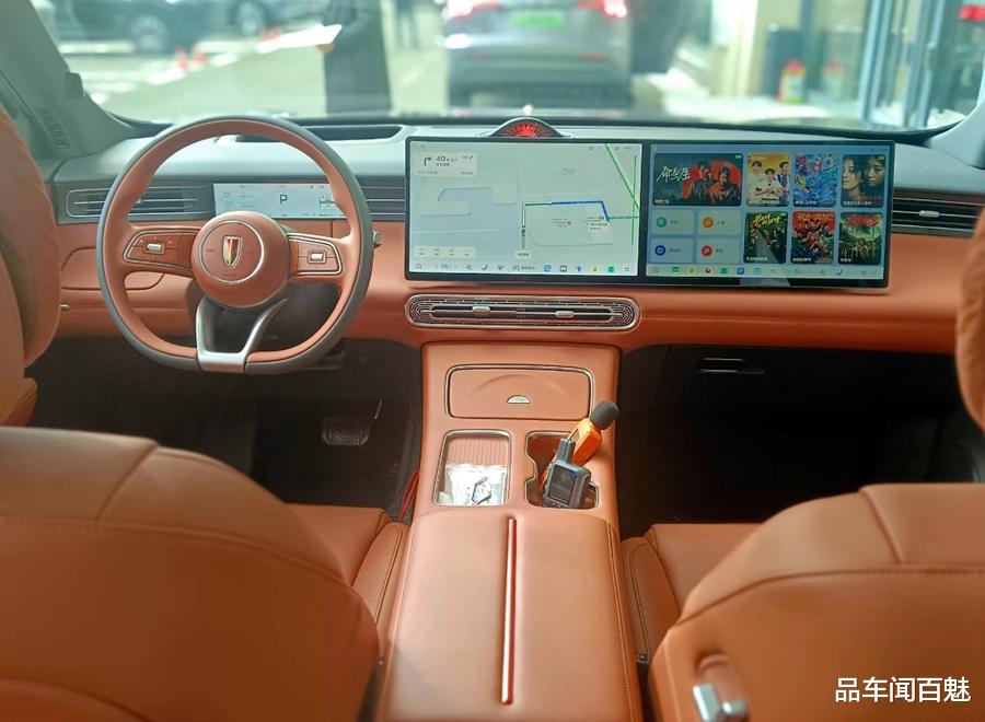 再让我们将视线转向车内,红旗HS6 PHEV还将采用有别于以往该品牌插混SUV的新设计。其内嵌式全液晶仪表虽然显得比较小巧,但其悬浮式中控屏与副驾驶娱乐屏组成的一体式智联屏结构,结合电子怀挡,却也足够营造出符合时代审美的科技氛围。而操作台中间位置凸起的可发光水晶扬声器,则为其车内注入了更多高端化设计格调。
