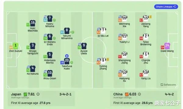 赛后评分显示,国足的6名首发球员评分都在6分以下,首发前锋碌碌无为,中场三脚传递基本没有,整条后防一次一次扮演对方进球的背景帝,唐家七公子,将本次比赛评为国足的”七戚“事变,意为7球落败之悲哀(戚)!