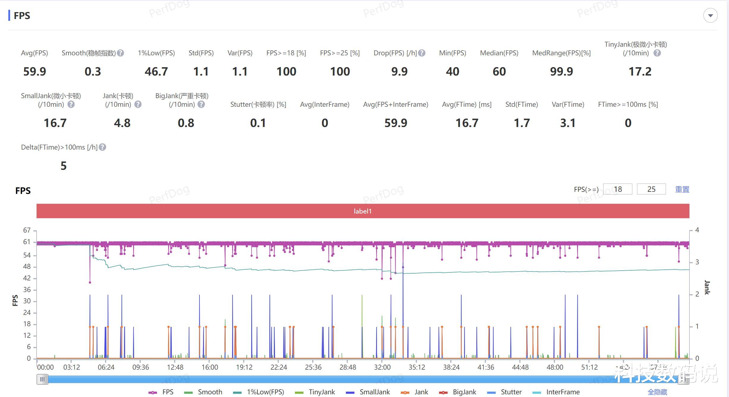 《崩坏:星穹铁道》画质全怼最高(实测982P),60帧模式连续肝了一小时,平均帧率59.9,接近满帧,关键1%Low帧46.7。
