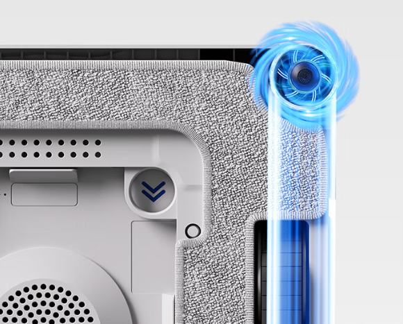 自研CornerClean™边角清洁技术,配备360°旋转弹力刷,可深入窗角缝隙,大幅减少传统机型常见的“边角黑线”问题。双喷头脉冲雾化喷水,搭配超细纤维抹布,去污均匀,日常浮尘与轻度水渍都能有效清理。AI智能路径规划支持Z/N字路线自动切换,具备断点续擦、智能避障功能,遇到门把手等障碍物可灵活绕行,大落地窗清洁效率高。安全上配备三重防护:断电后可续航吸附30分钟,搭配登山级安全绳,高层使用更安心。
