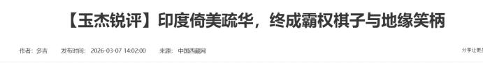 【玉杰锐评】印度倚美疏华,终成霸权棋子与地缘笑柄——中国西藏网