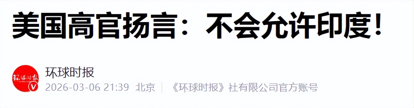 美国高官扬言:不会允许印度——环球时报