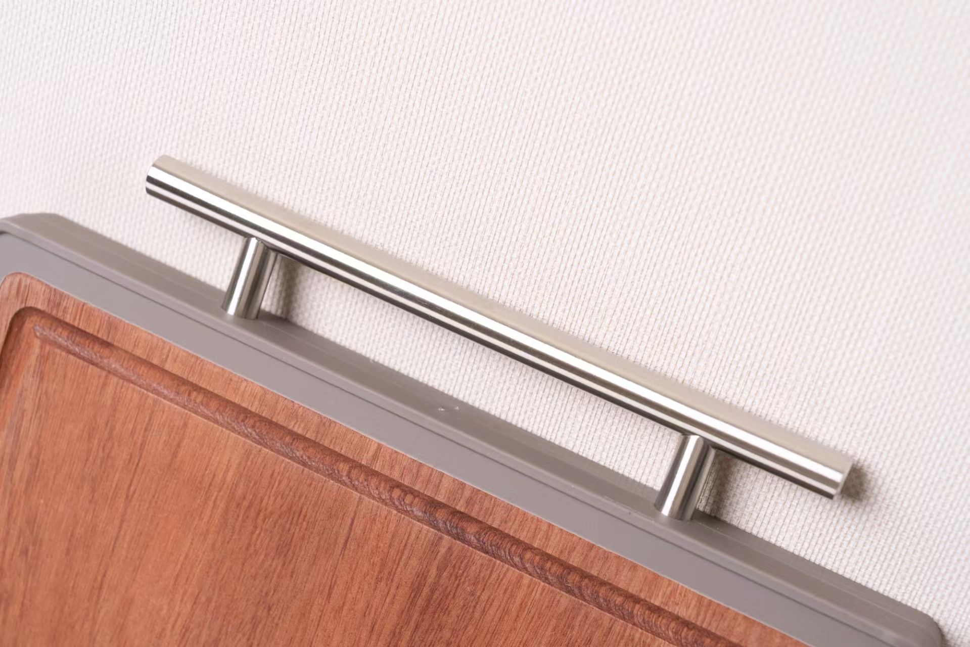 菜板一头还设计了不锈钢的提手,方便提拿收纳,用起来很顺手。