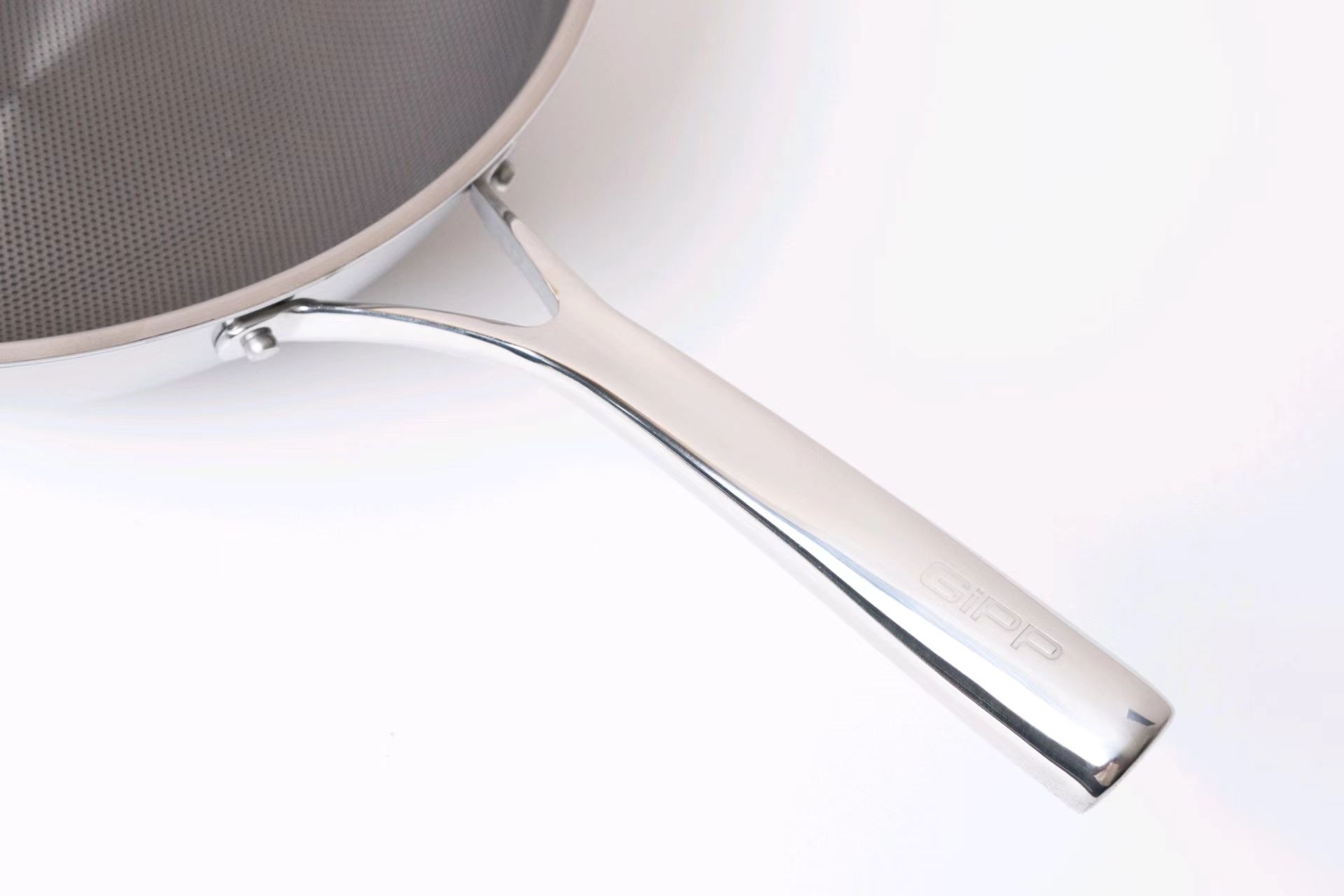 锅身采用轻量化设计,拿在手里有分量却不笨重,仅有约两瓶500ml矿泉水的重量 ,女生单手颠锅也毫不费力。锅面摸起来光滑细腻,很有 质感,边缘打磨得十分圆润,可见这款锅的工艺还也是精湛的。