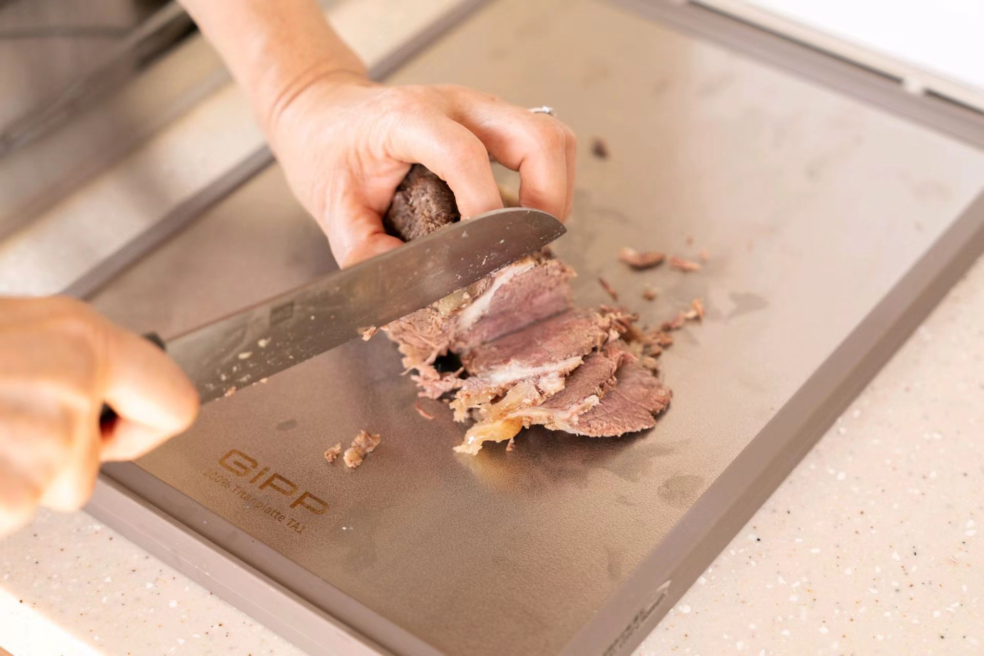 切菜时不会损伤刀刃。处理肉类时,砧板的吸水性很好。