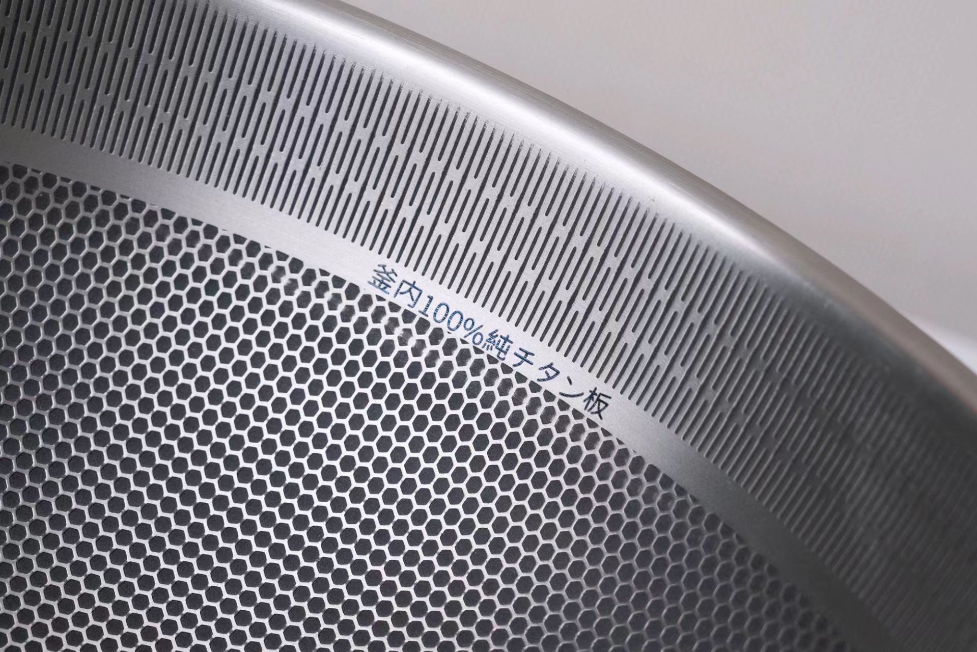 这款锅采用了钛+铝+陶瓷的材质:锅内采用100%纯钛板打造,无涂层,钛材质耐酸、耐碱、耐高温、耐低温,还抑菌;中层导热层铝制,保证良好均匀的导热性能;外层锅面采用陶瓷制。