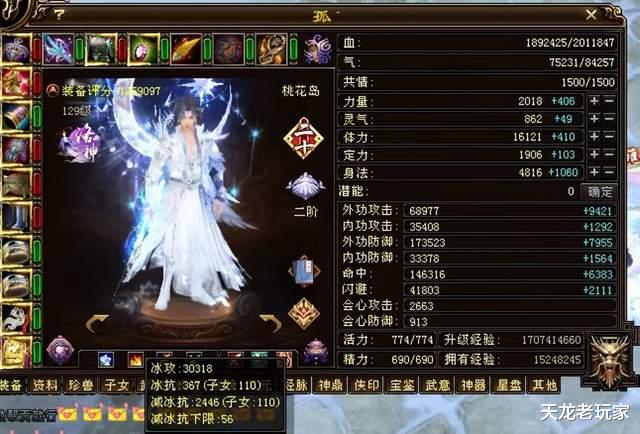 先看面板:125万评分,血量201万,蓝量8.4万,命中14.6万,闪避4.1万,会心攻击2683,会心防御913,主冰攻击30318,同时还有2446的减冰抗和56点减抗下限!