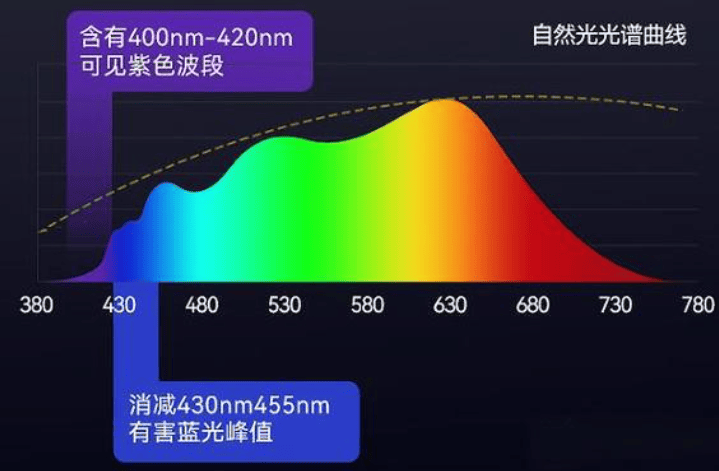 传统蓝光激发的护眼灯通常光谱不均匀,某些波段的光谱峰值较强而其他波段则较弱,这会使眼睛在长时间使用后感到不适和疲劳。而紫光激发光源的光谱更为连续,能够提供更平滑的光线分布,这不仅可以改善眼睛的舒适度,还能减少因频繁调节焦距而带来的视觉疲劳。
