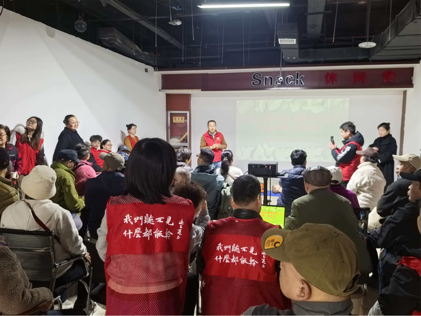 在场的志愿者们也全程配合,通过手写提示、肢体示范、一对一指导,耐心陪伴、逐一纠正动作。虽然没有声音交流,但现场眼神专注、手势默契、氛围温暖而有序。参训的聋哑员工们认真学习、积极参与实操,用专注和认真回应着这份来自志愿者的关爱与守护。