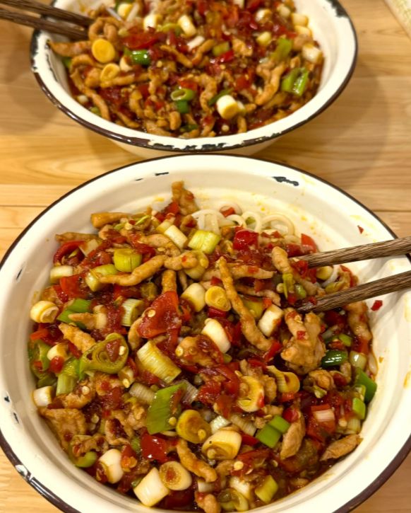最妙的是吃法。夹一块蒸肉放进碗里,用筷子打散,和米饭拌在一起。米粉、肉汁、米饭融为一体,每一粒米都变得油润鲜香。吃完肉,再夹一筷子蒸蔬菜清清口,然后是蒸鱼,再拌一轮饭。一笼三蒸吃完,碗底还剩一点米粉,用筷子刮干净送进嘴里,那是整顿饭最精华的部分。