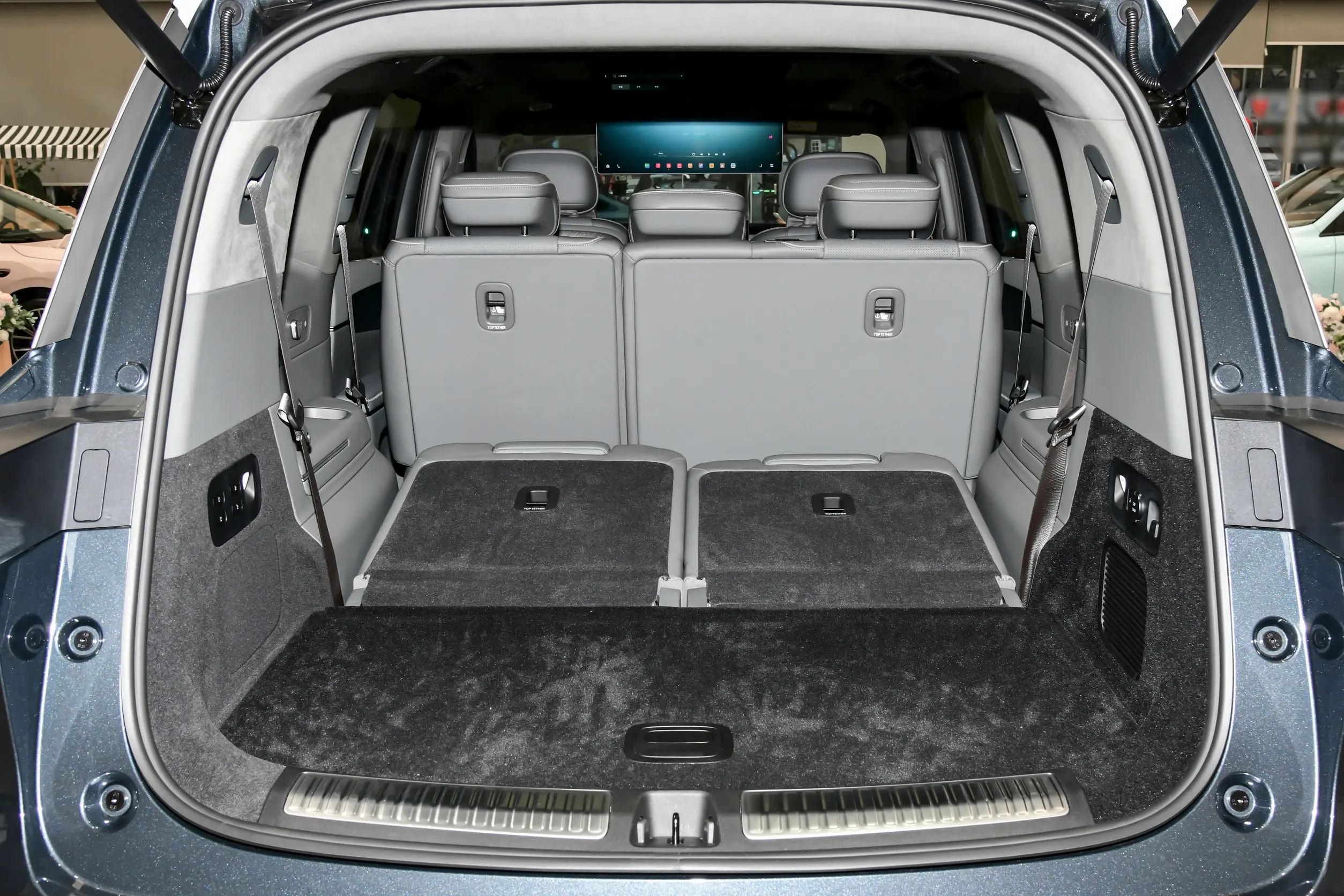 作为家用车,内饰和配置都要服务于空间实用性,这也是我重点体验的部分。空间表现是家用用户重点关注的部分,我身高178cm,分别体验了车内三排空间。实拍的2026款增程80.3kWh七座版,前排座椅调节范围宽泛,头部空间充裕,就算调整到舒适的驾驶坐姿,头顶也有一拳多的余量;第二排腿部空间宽松,座椅支撑性良好,长途乘坐不易疲劳,中间地面凸起不高,就算坐三名乘客,中间位置也不会太过局促;第三排空间在同级别车型中表现较为实用,成年人短途乘坐不会感到局促,同时配备独立空调出风口与充电接口,孩子坐在后排也能自行充电、调节风量,能满足全家多人出行需求。后备箱常规状态可满足日常行李装载,放下两个20寸登机箱和背包完全没问题,放倒第三排座椅后装载空间大幅提升,周末在贵阳周边自驾露营,装下帐篷、烧烤架、儿童推车等装备也绰绰有余。车内储物空间布局合理,门板、扶手箱、中控镂空区域都能存放物品,手机、水杯、儿童用品等都有合适的放置位置,细节设计贴合家庭使用习惯。