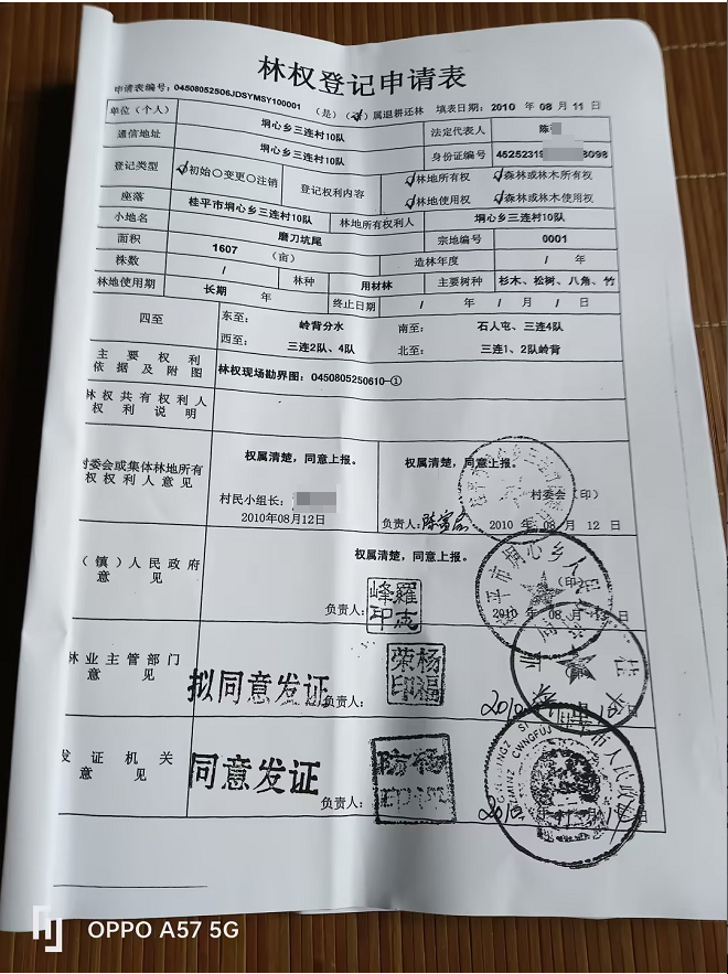 三连村第十村民小组对黄猄冲林地的权属,有着清晰的历史脉络。清朝乾隆年间,十组先祖陈芳信从陈俊旌等人手中购置了该片区土地,留存的地契成为核心权属凭证。数百年来,十组村民世代在此耕耘,先后种植杉木、八角、肉桂等经济作物,留下了持续的耕管痕迹,大集体时期修筑的香菇场地基、开垦的梯田,以及历代种植的经济林木,都是无可辩驳的实际耕管证明。