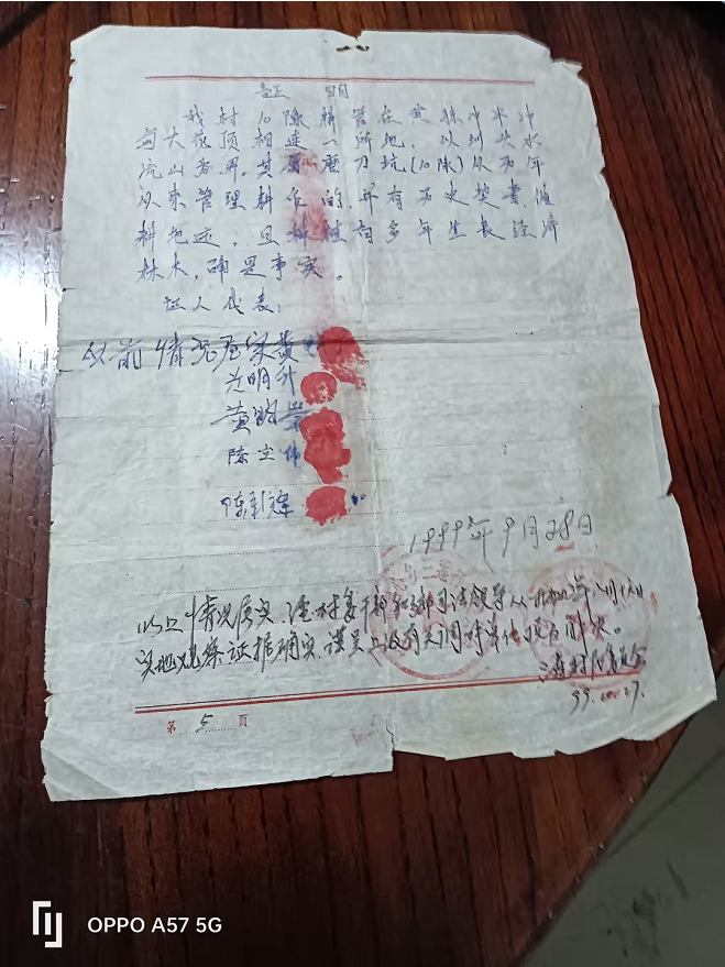 但在本次争议的诉讼过程中,陈裕汉却在一二组的授意下,出具了一份与客观事实不符的情况说明,声称争议林地不在当年的划分范围之内。十组村民持原始分地图纸与陈裕汉核实,其却以 “老了、糊涂了、忘记了” 为由推脱,但该份情况说明字迹工整、陈述条理清晰,显然并非 “糊涂” 所致。这种罔顾客观事实、出具不实证明的行为,不仅干扰了权属争议的正常处理,也违背了基本的诚信原则。