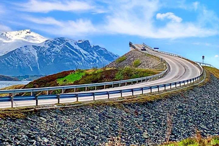 接着过轮渡,回到挪威本岛博德,沿着E6号公路继续南下,南部峡湾,荒原,雪山,冰川同样精彩,这段5天的行程后,抵达被誉为“世界上最美公路”的大西洋之路“:这段公路全长约8公里,由8座大桥串联起散落在北大西洋上的小岛。那座极具视觉冲击力的“通天桥”——斯托尔桑德桥,由于巧妙的弧度设计,当你从特定角度看去,桥面仿佛在最高处戛然而止,像是要冲向天空。