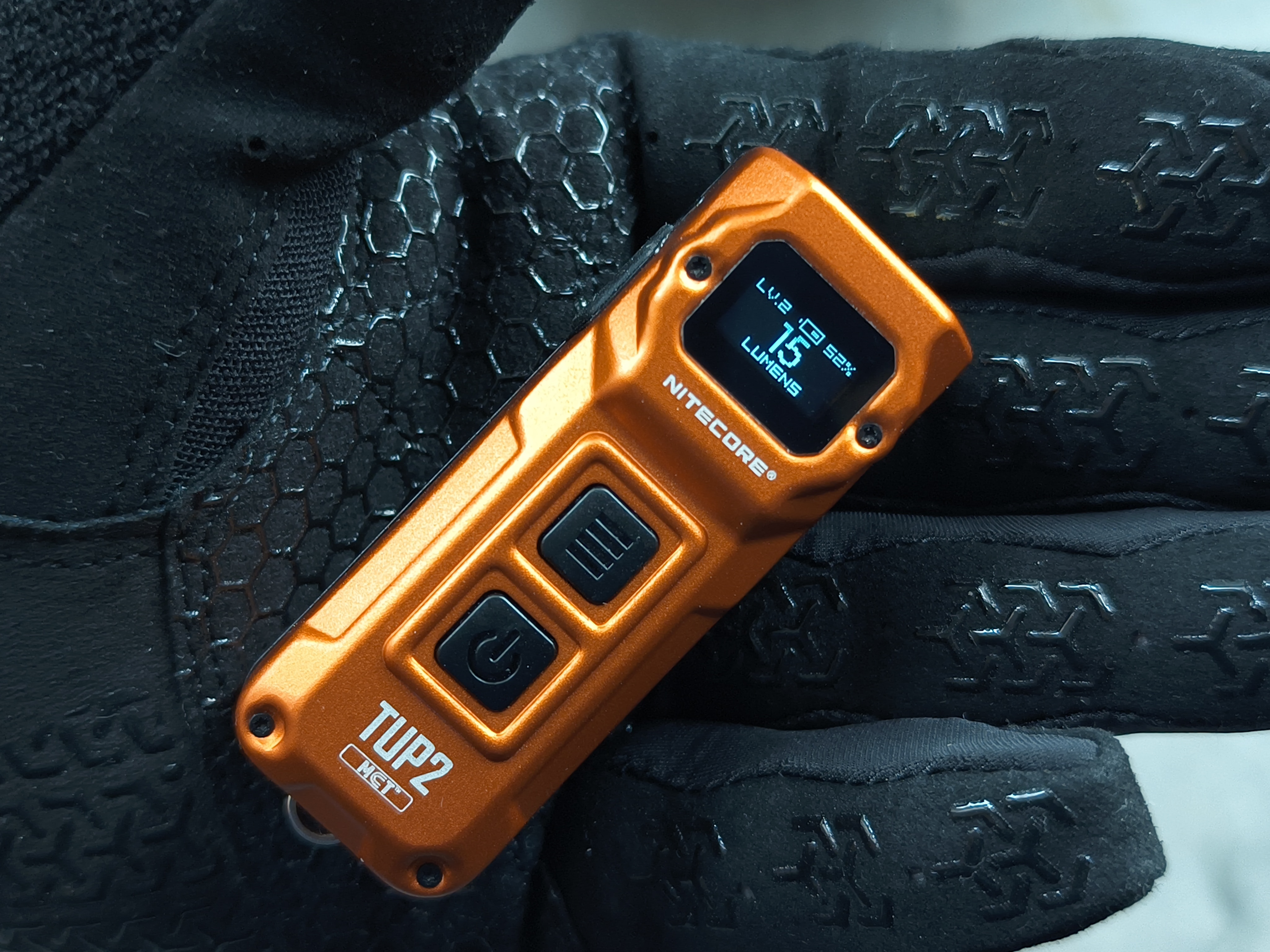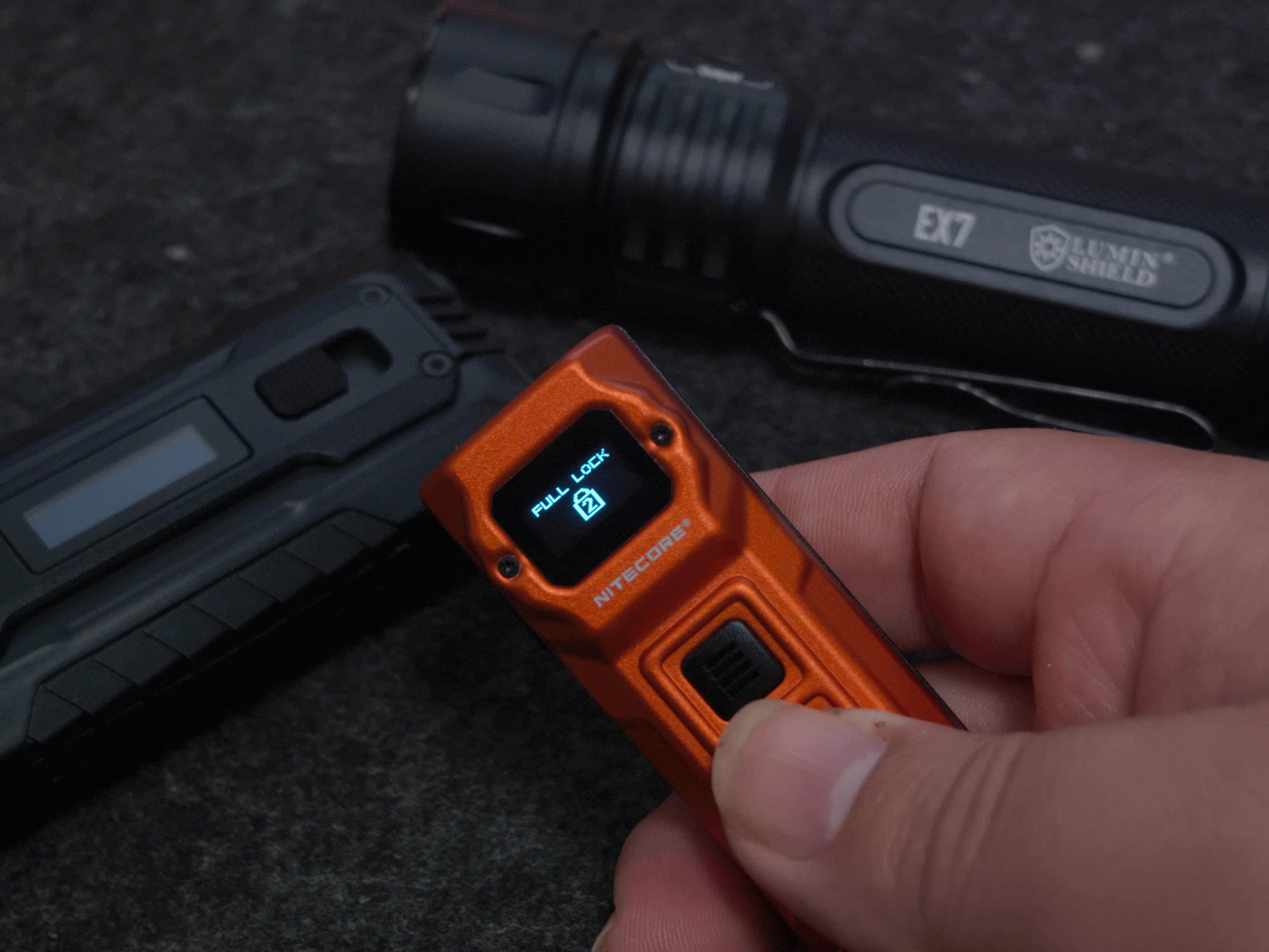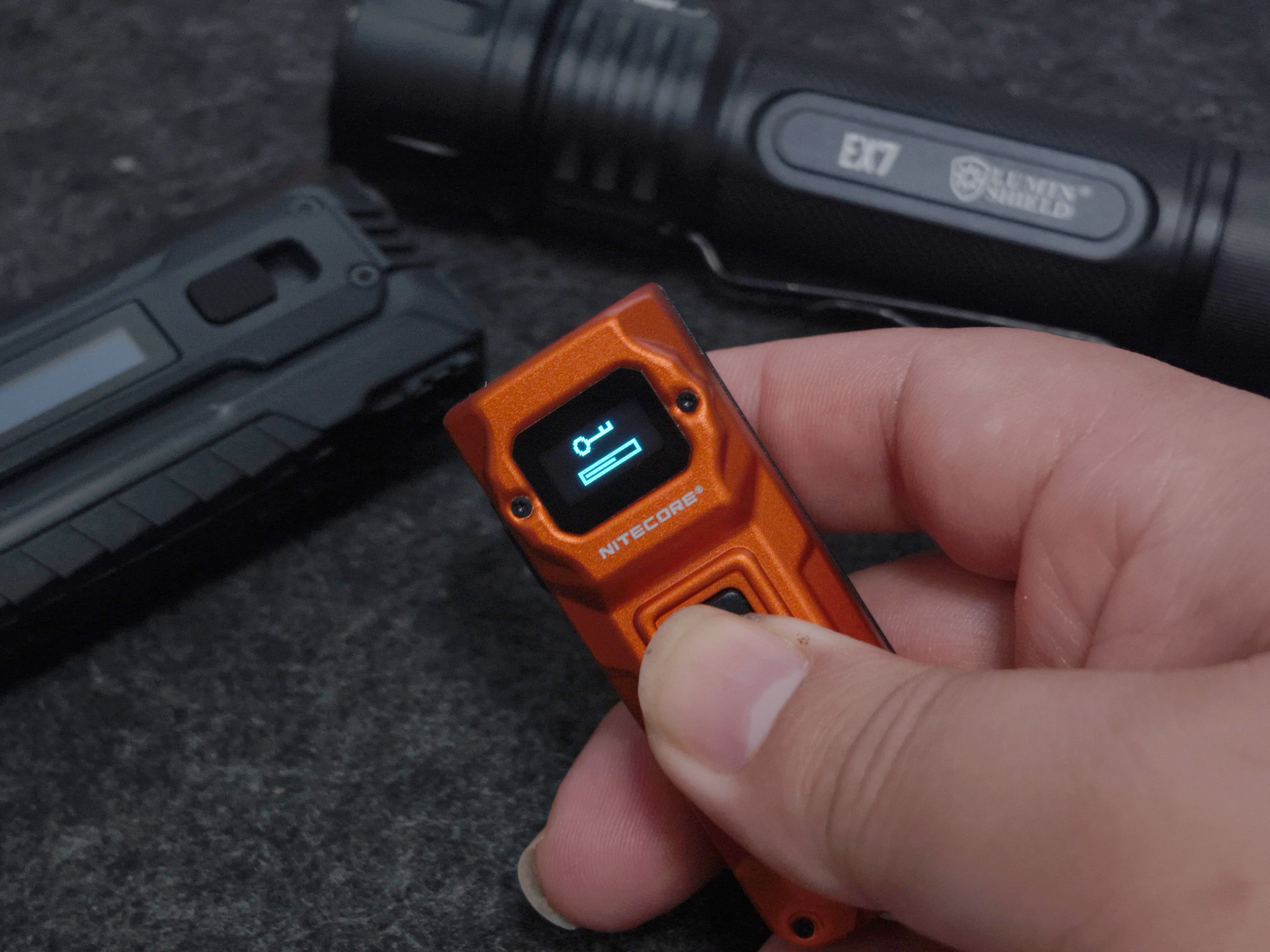 TUP2的OLED显示屏可以说是画龙点睛之设计。这个仅指甲盖大小的屏幕,却提供了极其丰富的信息:开机瞬间,屏幕会清晰显示当前实时的亮度等级,流明值,当前电量以及当前档位的续航时间,10秒无操作屏幕自动熄灭,再次单击功能键可唤醒屏幕。