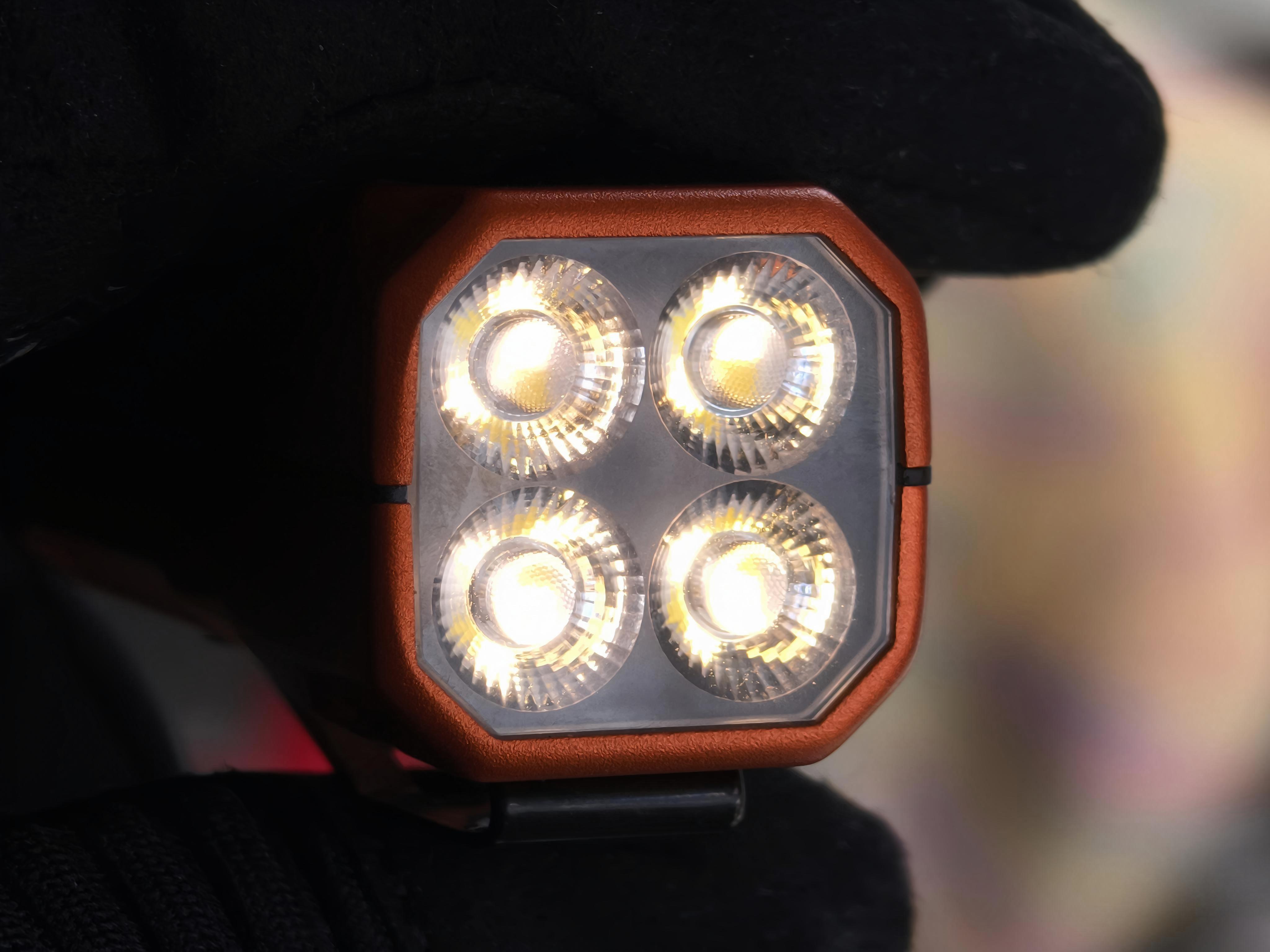 极亮档属于隐藏档位,任意色温开启时,只需要长按功能键立即进入,松手回到原档位。此时1200LM的光通量,3900cd的光强,足以驱散眼前的黑暗。