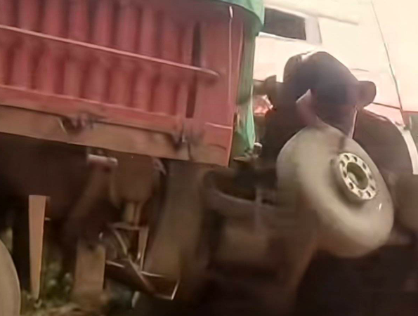 “轰隆隆——”原本静静停在路边的货车,毫无预兆地开始剧烈晃动,紧接着车身缓缓倾斜,一场突如其来的危机瞬间降临。