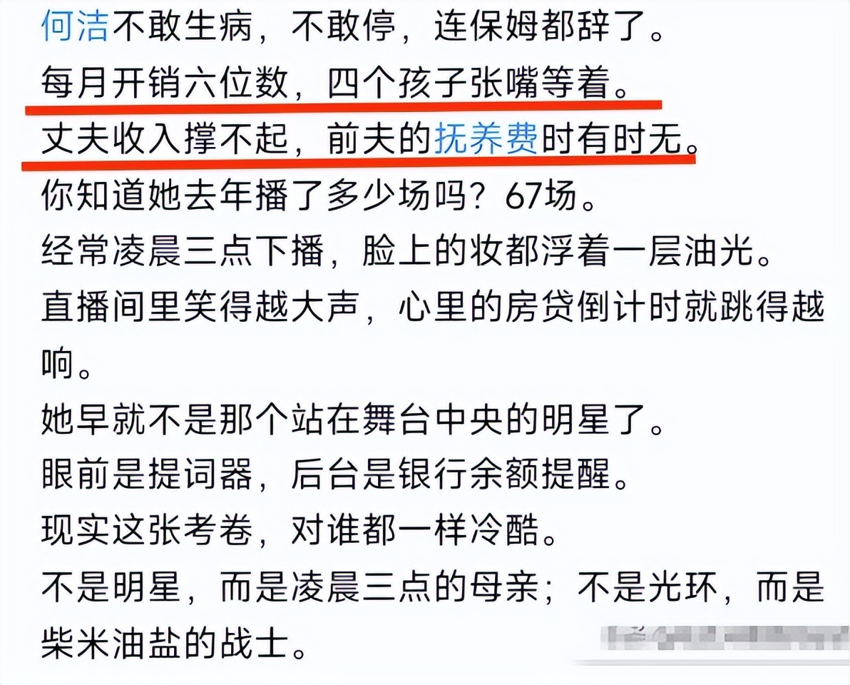 其实何洁的努力是真的,独自养四个孩子的辛苦也毋庸置疑,但她错就错在找错了宣泄压力的方式,混淆了明星与普通人的苦难边界。