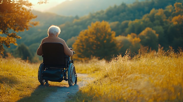 走到景区大门时,又遇到了山顶推轮椅的那对老人,他们在阳光下悠闲地坐着,恩爱地彼此相倚。