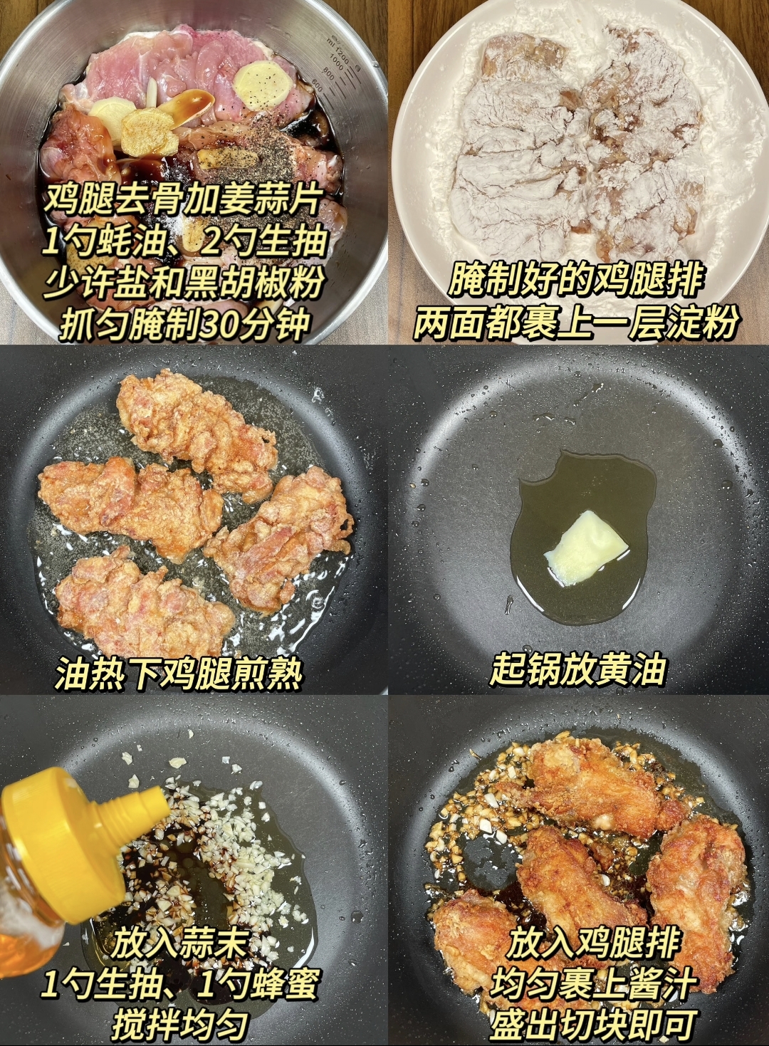 其实做这道菜的初衷特简单,就是想给总吃外卖的自己换个口味,谁知道这金黄酥脆的外皮、裹着蜂蜜黄油香的肉汁,直接把我拉回了小时候外婆做的炸鸡腿——那会儿外婆总说“炸肉要裹淀粉,这样才会脆”,现在想来,网友的配方和外婆的老法子,居然藏着一样的“好吃密码”。
