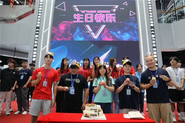在比赛现场,主办方还为出生在 7 月份的 5 位台青台属准备了一份生日的惊喜, 当大屏依次出现了 5 张笑脸,主持人引导大家高唱《生日歌》的时候,现场气氛瞬间变得温馨起来,“主办方为寿星们庆生,让我们觉得很感动很温暖,仿佛家人一 样。 ” 台青李元说道。