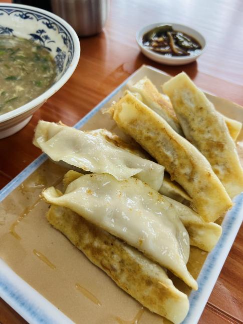 宽婆子海鲜锅贴,没有多余营销,全靠口味留住人。海鲜馅料新鲜扎实,拒绝添加多余调料,每一个都现包现煎,面皮筋道有嚼劲,煎至金黄不发硬,内里软嫩多汁,鲜而不腥。墨鱼馅是特色,Q弹紧实的墨鱼肉,裹着鲜香韭菜,咬开后鲜汁充盈。