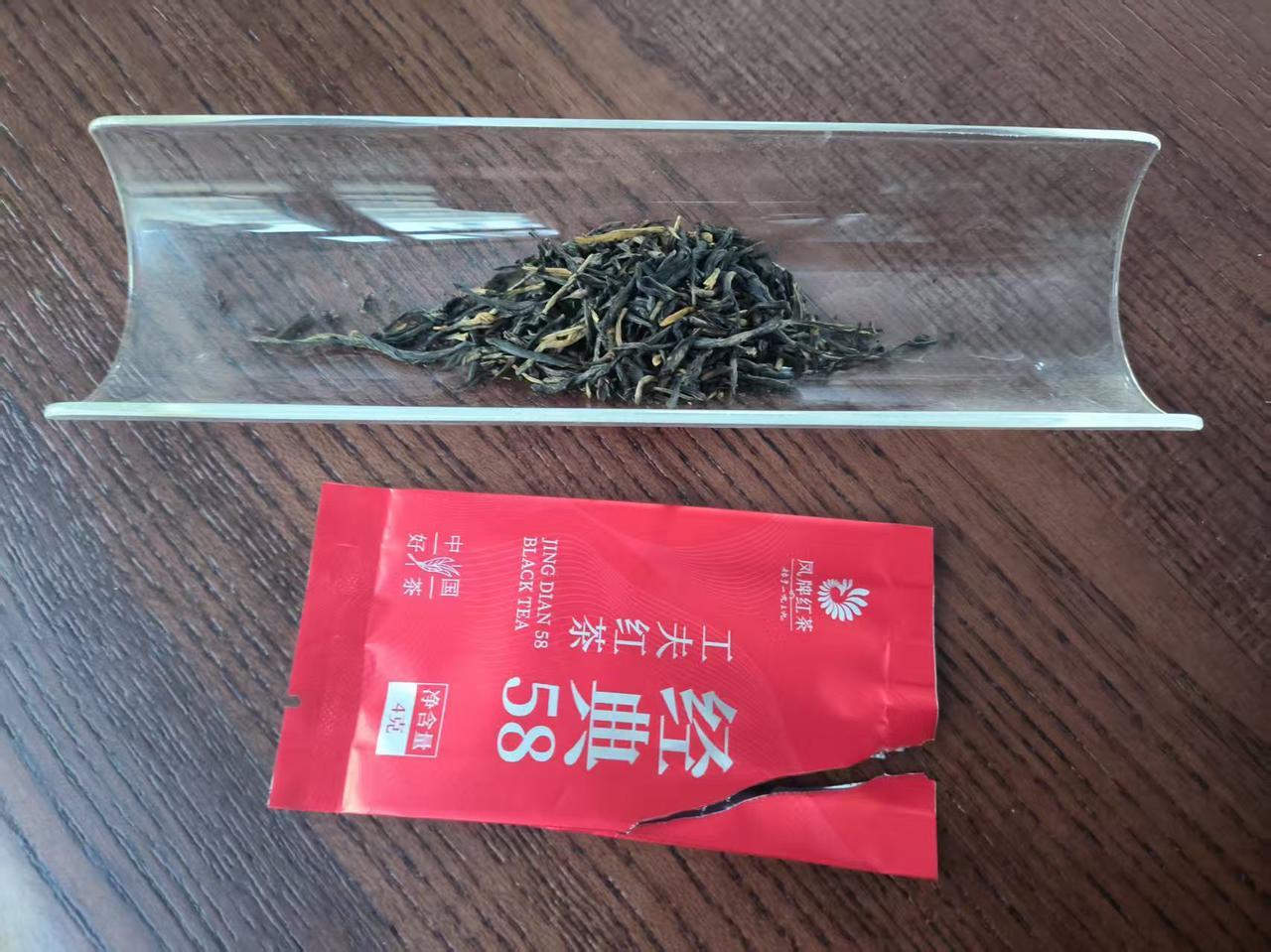 凤牌红茶——经典58 工夫红茶概况:1.净含量4g2.茶叶:(1)形:条索挺拔优美,多为芽叶,茶叶品级上等(2)色:汤色