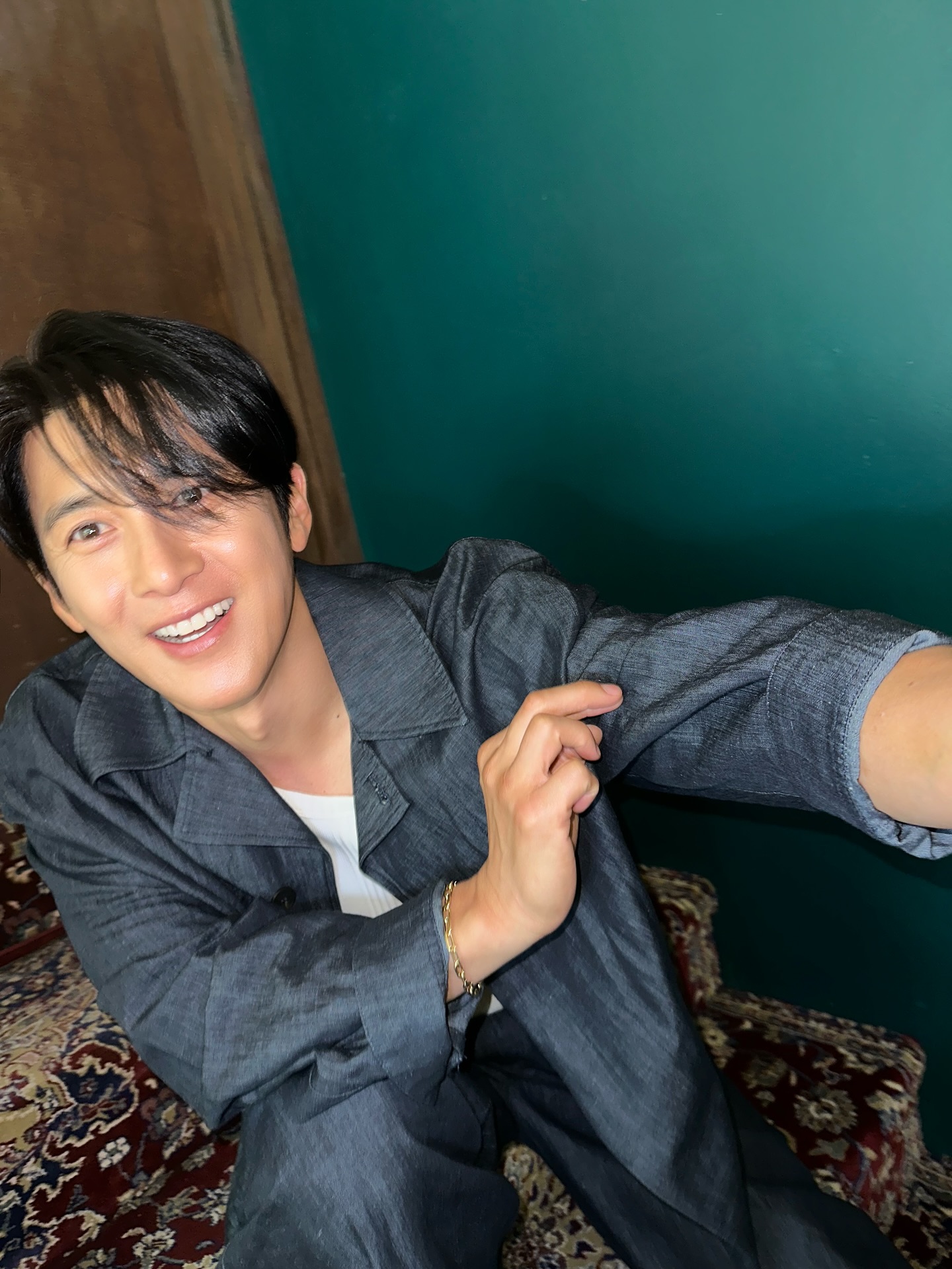 最让人惊叹的是他那张仿佛被岁月遗忘的脸,五官依然立体俊朗,眼神温柔深邃,笑起来时眼角微微的纹路反而更添成熟魅力。