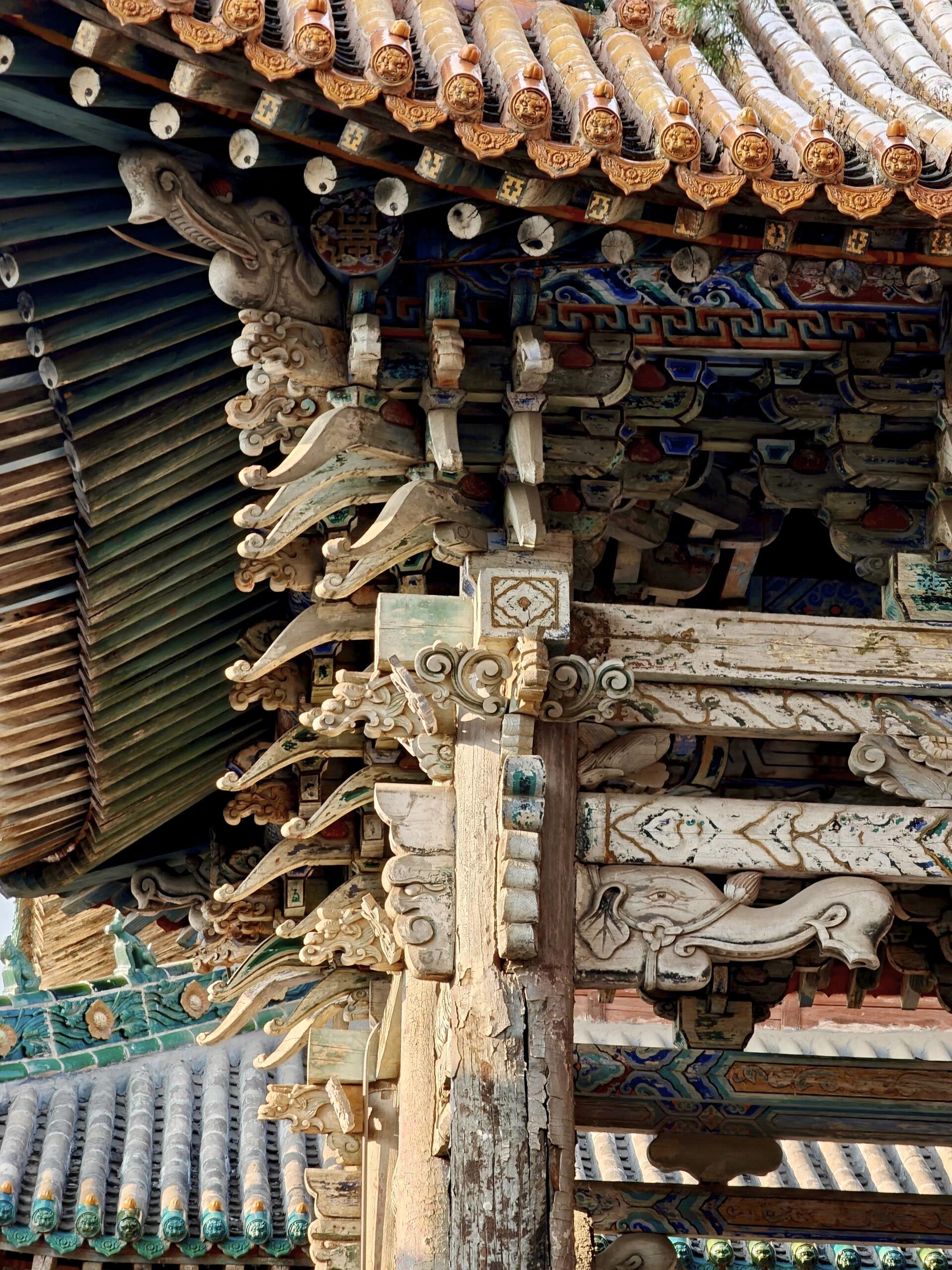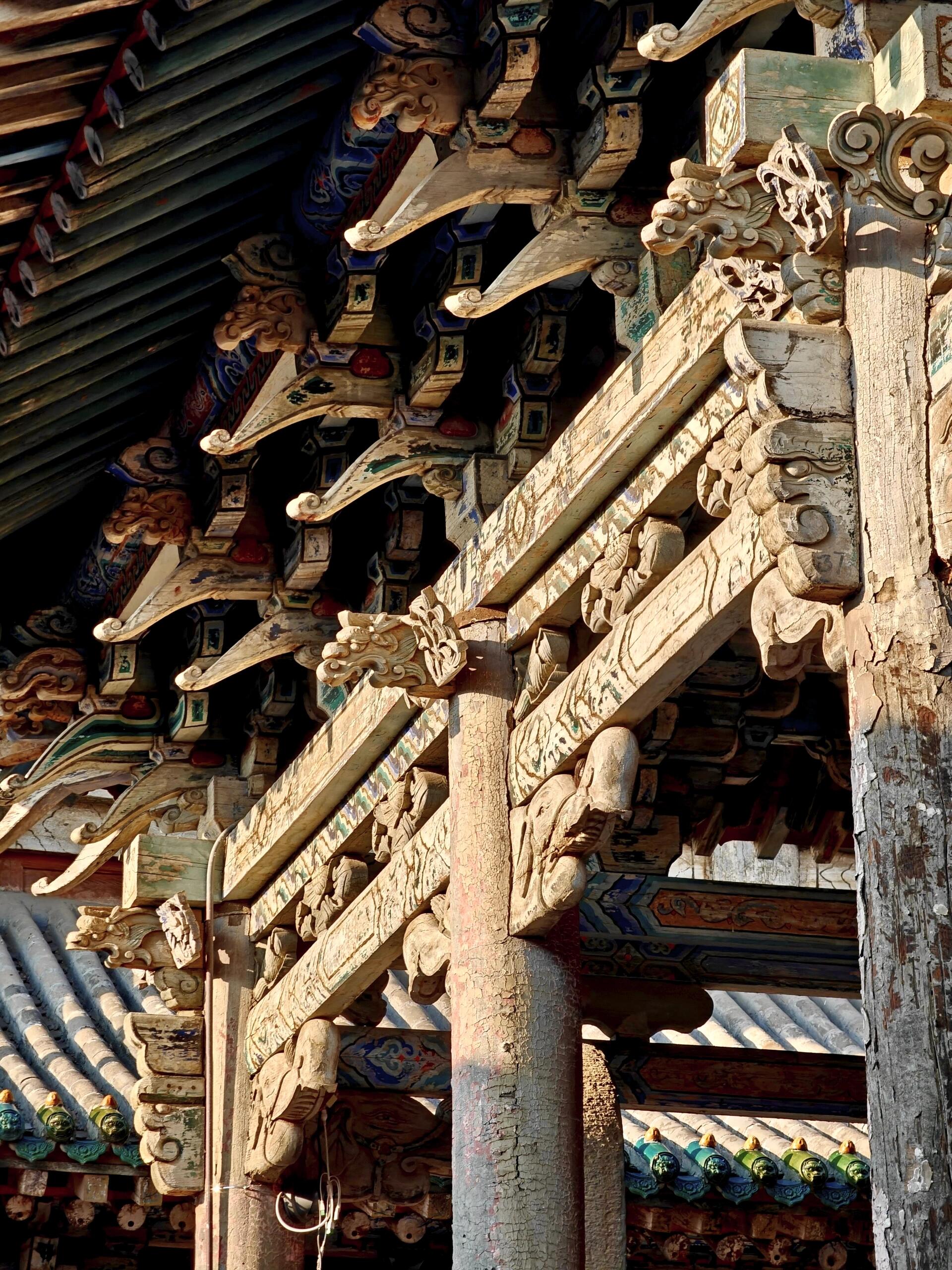 在小靳东岳庙的短短一小时里,我的目光始终被那些精美的细节牵引:琉璃瓦的流光溢彩,斗拱的精巧繁复,木雕石雕的栩栩如生,彩塑壁画的真挚动人。这里没有热门景区的喧嚣与商业化,只有文保员的默默守护和古建艺术的静静绽放。十元钱的门票,或许不足以衡量这些文化瑰宝的价值,却为我们打开了一扇通往历史与艺术的大门。