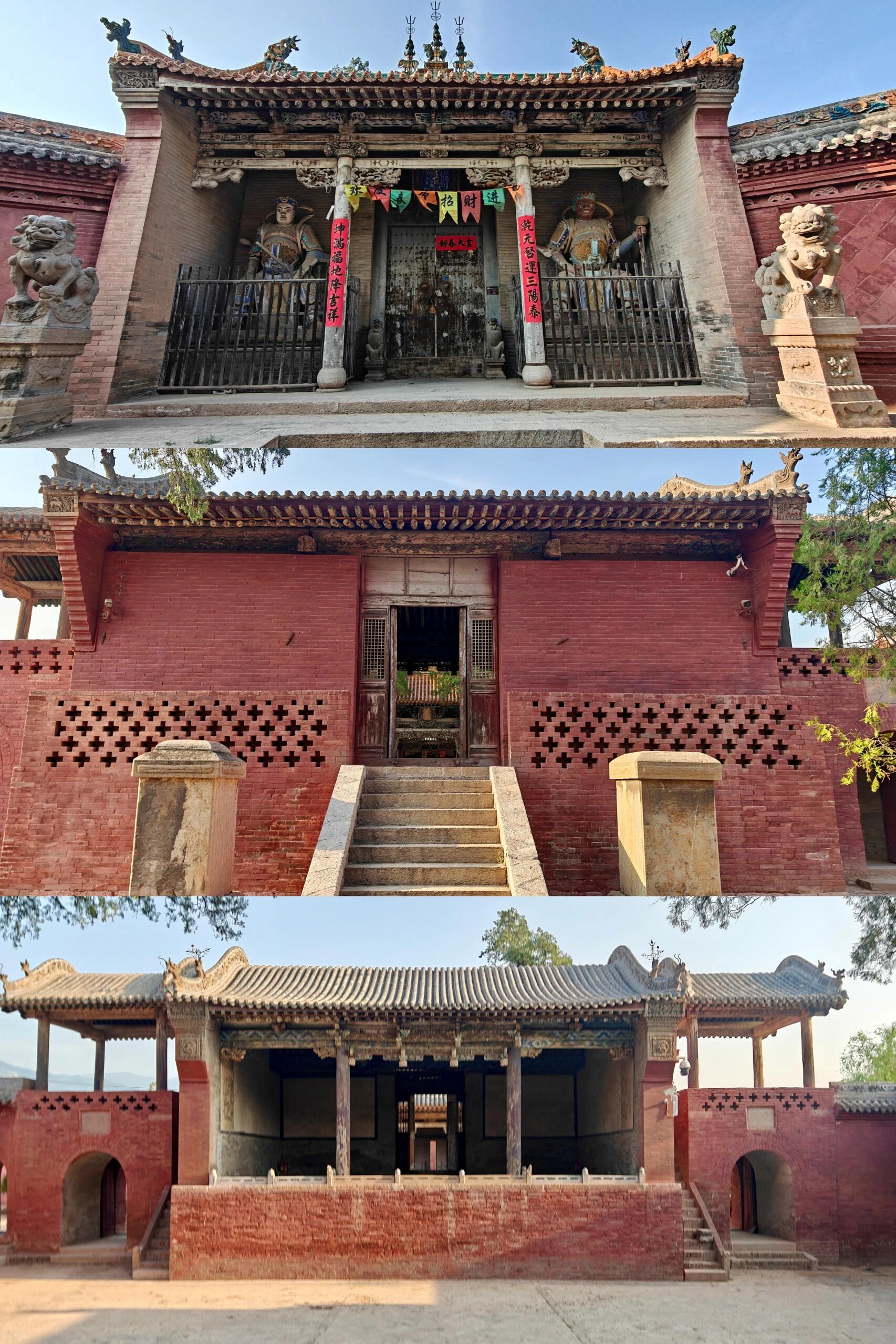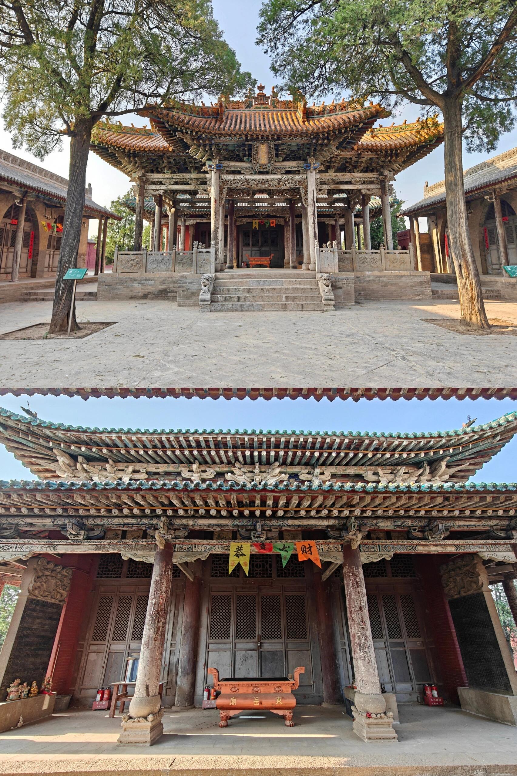 这座始建年代不详,最早重修记录可追溯至元至元七年的古庙,历经明清数次重修,依旧完整地保留着历代的建筑风格与艺术精华。三进院落布局紧凑,空间灵活,中轴线上的影壁、山门、戏台、献殿、大殿、后殿依次排布,左右钟鼓楼与窑洞式配殿相互呼应,既符合传统庙宇的规制,又融入了地方特色,堪称北方乡间庙宇建筑的典范。
