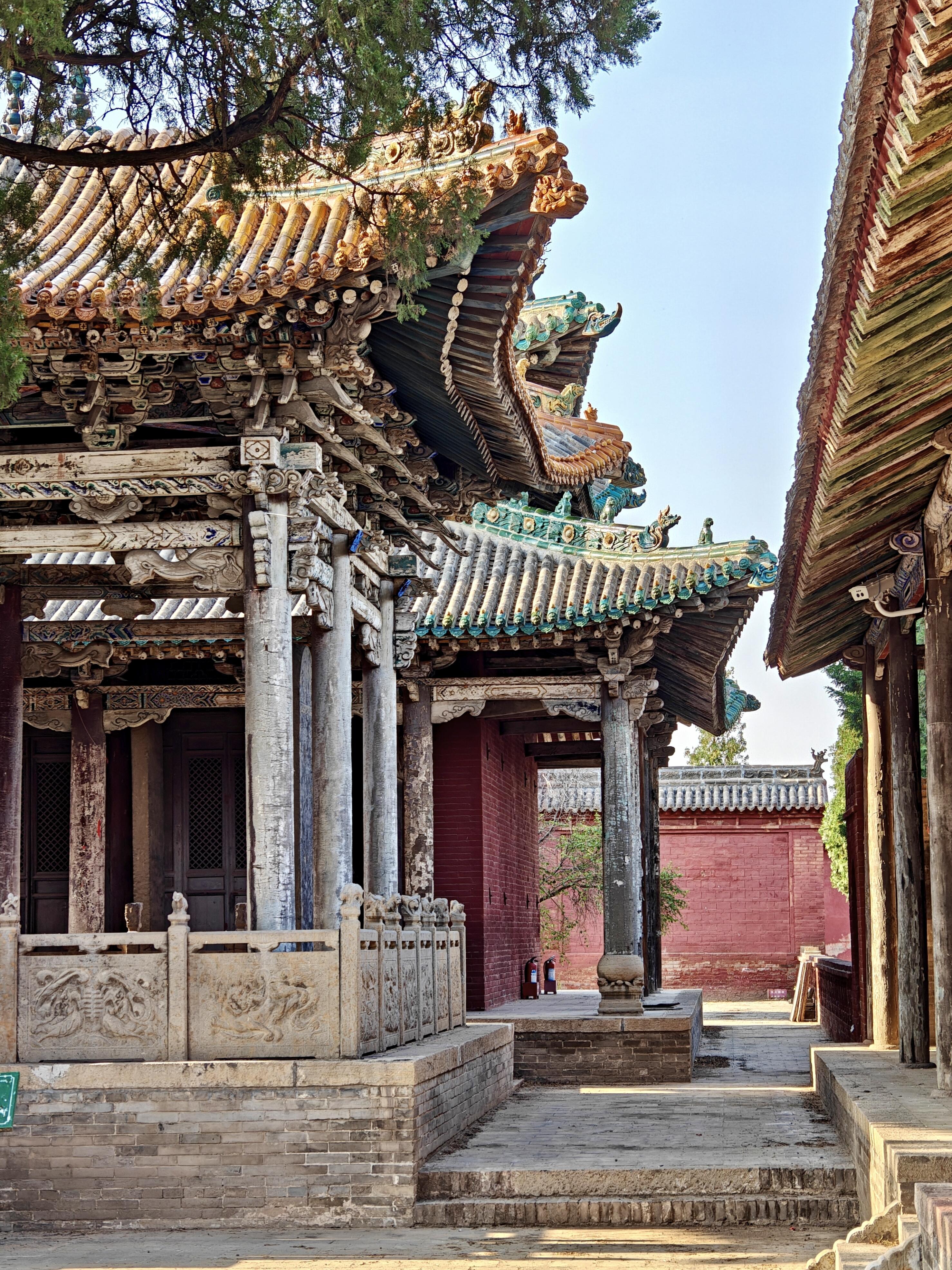 从王家大院返程介休的傍晚,天色尚未暗沉,循着零星的指引驱车拐进乡间小路,本意只是打发归途前的闲暇,却没料到,一座藏在寻常巷陌间的小庙,竟给了我此行最意外的震撼。这便是小靳东岳庙,没有显赫的声名,没有拥挤的人潮,仅需给文保员十元心意,便能推开那扇隔绝尘嚣的山门,走进一段被琉璃与彩塑尘封的千年时光。