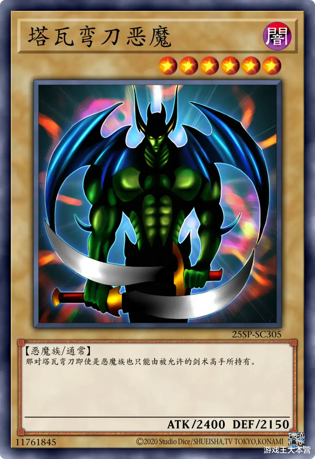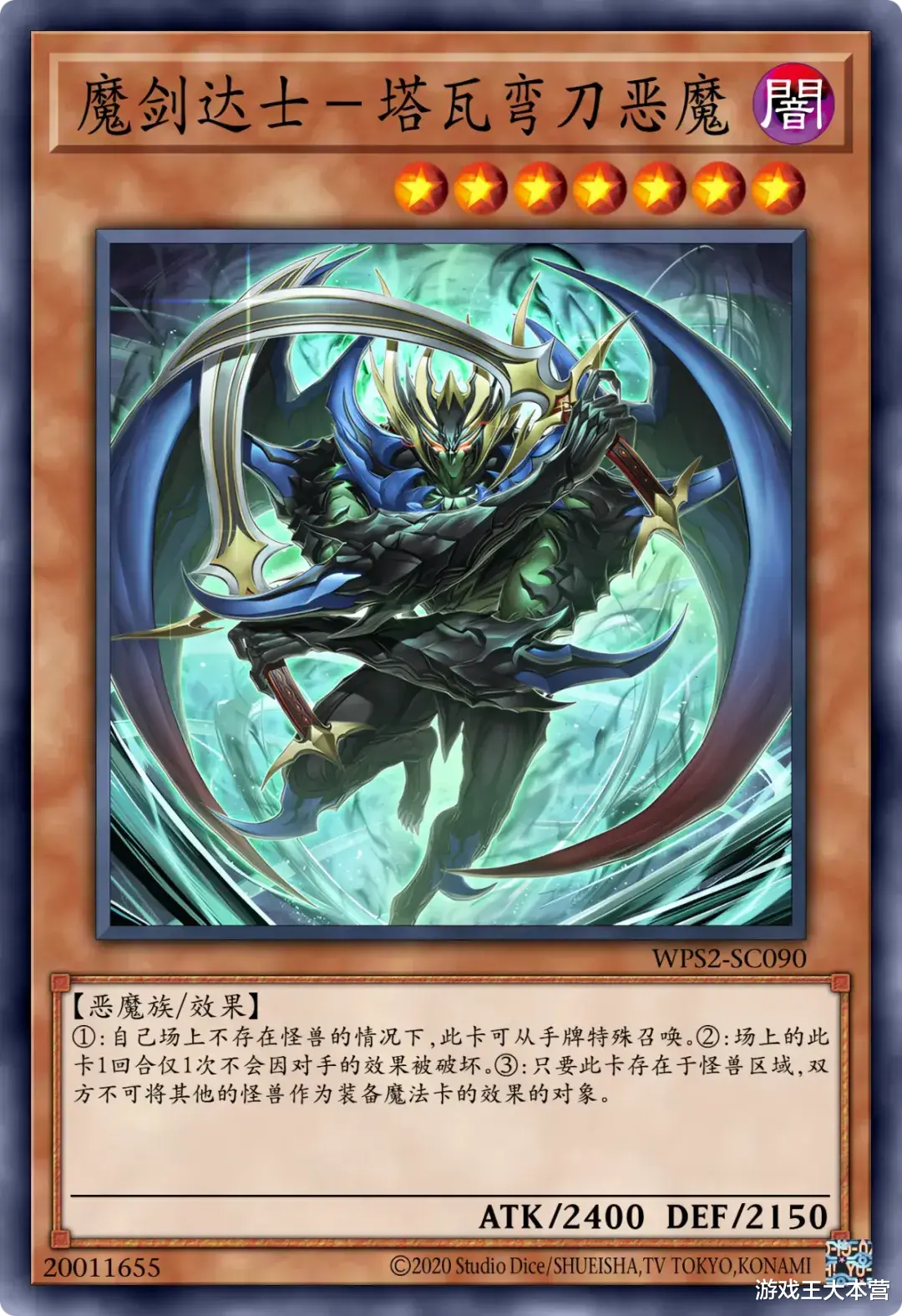 塔瓦弯刀恶魔 和 戴比鲁佐亚 均为初代登场的暗属性恶魔族通常怪兽。二者在早期环境中作为高攻白板用。重构效果文本:魔剑达士 - 塔瓦弯刀恶魔新增空场手卡特召、1 回合 1 次效破抗性,以及封锁双方以其他怪兽为装备魔法对象的效果;