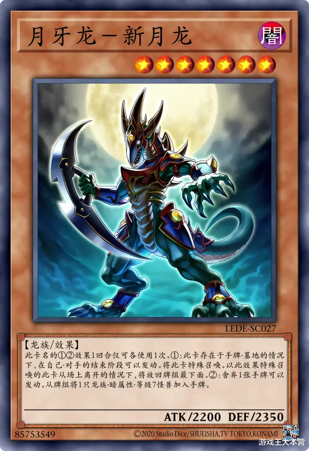 这类旧卡翻新的设计,最早在 OCG 1204 卡包「LEDE」中正式登场,首弹推出的便是初代白板怪兽「新月龙」的翻新版本「月牙龙 - 新月龙」,此后该设计思路被持续沿用,陆续推出了更多初代经典怪兽的翻新卡。