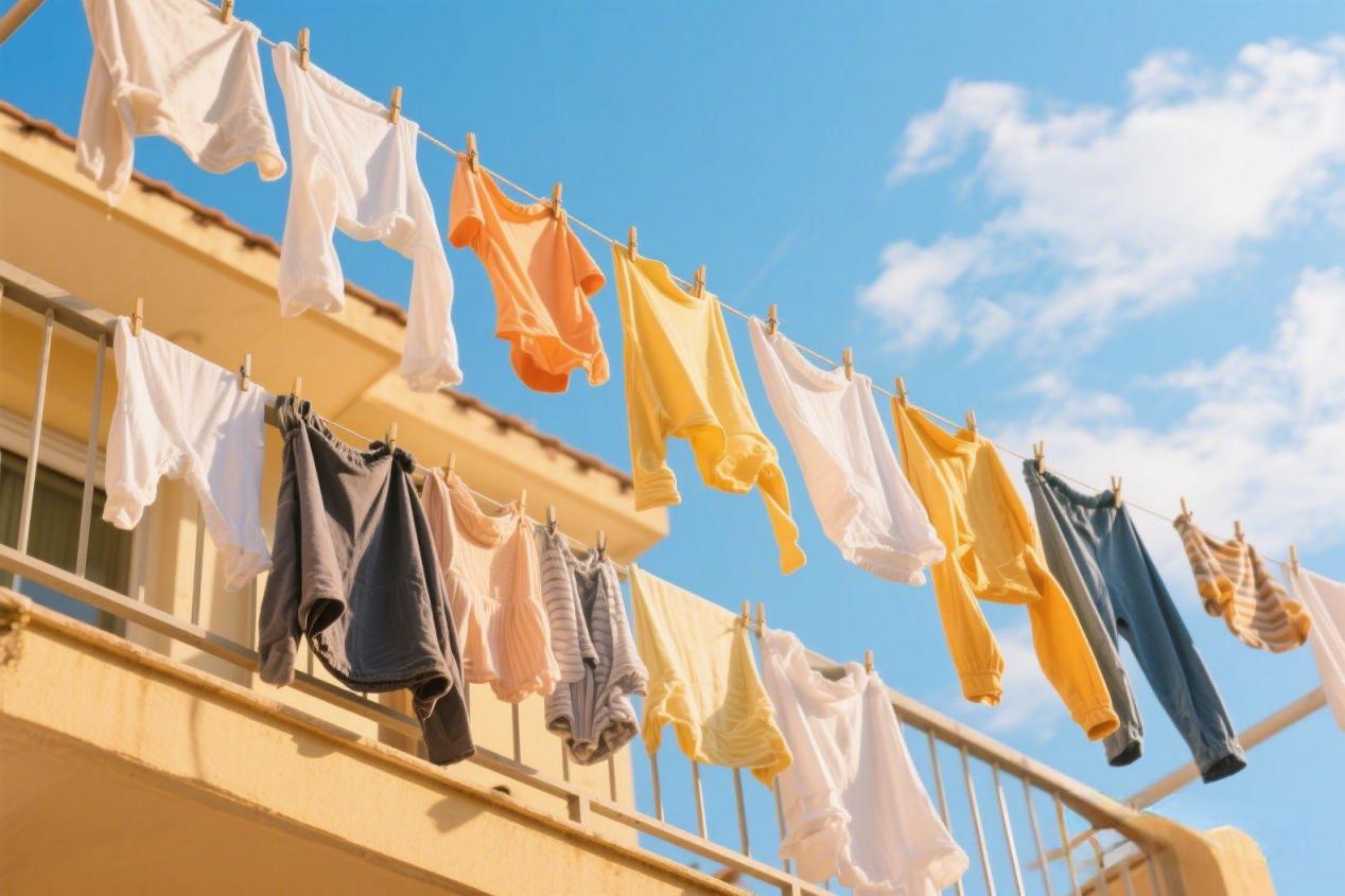 晴天晾晒时,衣物之间要保持5-10厘米间距,避免重叠形成“消毒盲区”。贴身内衣建议正着晒,让紫外线直接照射接触皮肤的部位;深色衣物则反着晒,能有效防止褪色。