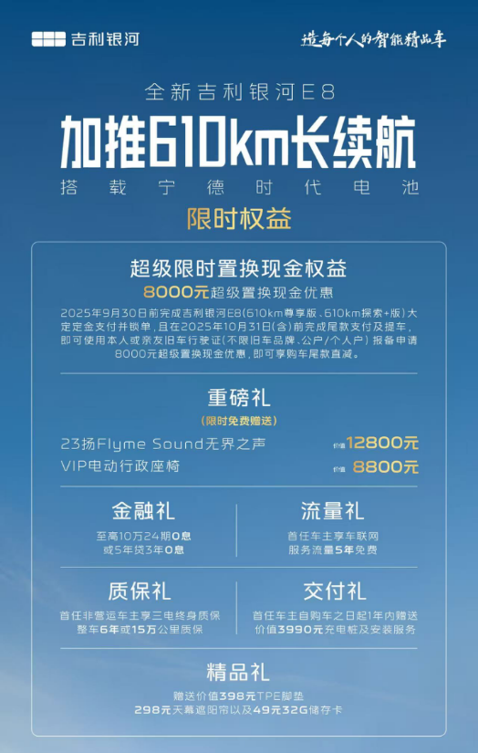 此次升级,吉利银河E8精准切中用户对续航、动力与性价比的核心需求,配合限时权益政策,或将成为20万级纯电市场的“黑马”。新车能否凭借硬核实力改写市场格局?答案值得期待。