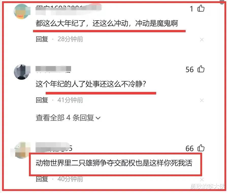 此事经过网络发酵,迅速引起了网友们的议论,有的网友认为都一把年纪了,还这么冲动,太不冷静了,凶手事后绝对会为今天的冲动后悔的,你只记得女友,但何曾想过你的父母还在等你为他们养老呢?
