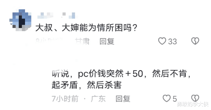 甚至有广东当地的网友指出,他听说的版本并不是情感纠纷导致的,而是另一个版本,但直到现在官方也没有发具体的通告,我们还是不信谣、不传谣为好。