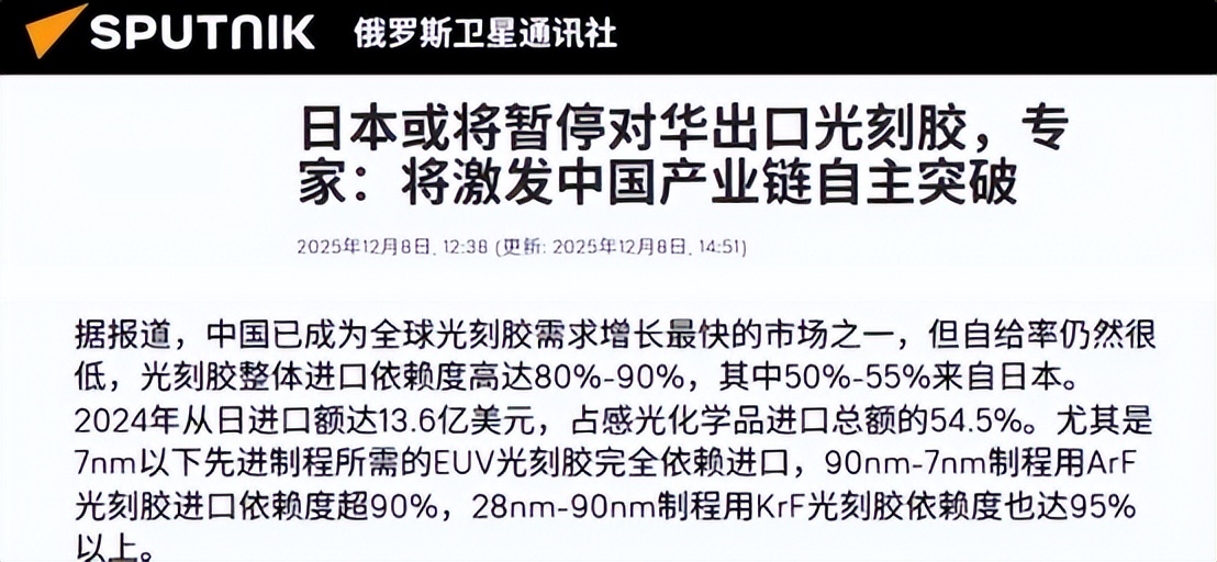 日本在光刻胶领域确实垄断了不少份额,这帮人就建议高市早苗政府干脆对中国断供光刻胶,以此作为最后一张牌来要挟中国撤销制裁。