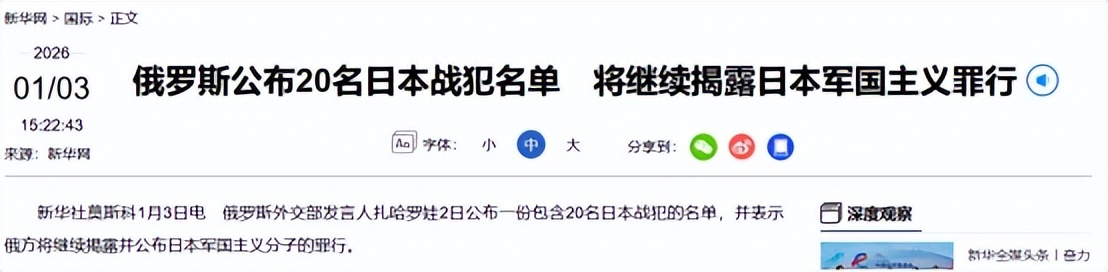 早在6天前,也就是1月2日,俄罗斯直接公布了一份包含20个日本战犯的名单,而且人家在这干的很绝,他们不仅公布名单,还废除了之前对一些二战日本人的平反决定。