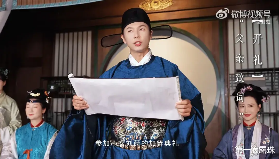 不过说到这里,看完了翁虹发的小水晶中式成人礼视频,我感觉这个及笄礼在服饰装扮方面,有一点是错误的:就是作为女儿已经成年的父亲,刘冠廷的古代装扮中,缺少了重要的一样东西,胡子!