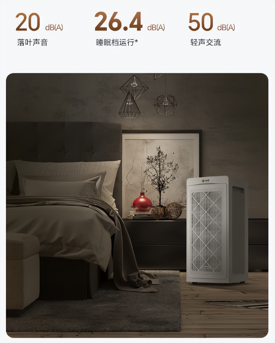 除了自动息屏,浅眠党最在意的静音表现,新颐也完全在线。实测 A8 睡眠档噪音仅 26.4dB,小白 3.0 约 36.6dB,相当于落叶声的音量,运行时只有微弱的气流声,没有电机嗡鸣、没有共振杂音,贴床头放置也几乎无感。夜间开启后,既能持续净化,又不会被噪音吵醒,哪怕是浅眠人群、新生儿,也能安稳睡整觉。