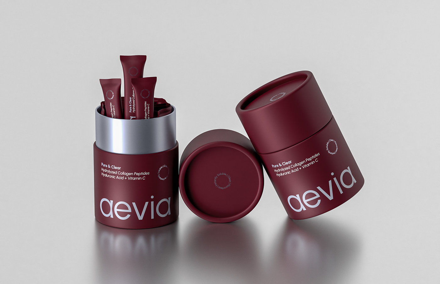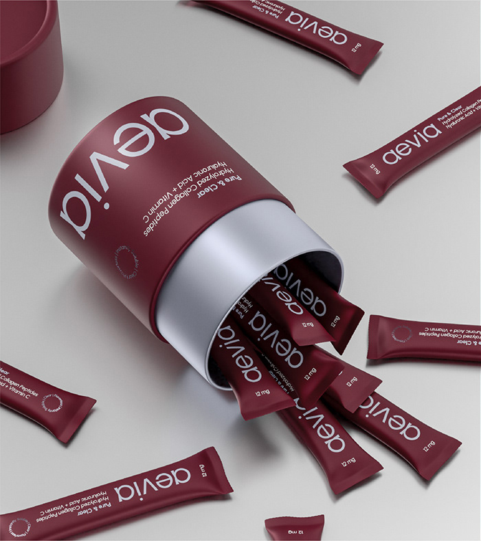 再来看aevia的包装。这款包装走的是极简奢华路线,以深红色为主色调,搭配上简洁的白色文字,显得高贵而典雅。包装采用了圆筒形状,这种设计不仅节省空间,还方便携带。打开包装,里面是一支支独立的小包装,既保证了卫生性,又方便使用者随时取用。而且,这些小包装还巧妙地设计成了可回收的材料,体现了品牌对环保的重视。整个包装设计简洁而不失精致,让人一眼就能感受到品牌的专业与用心。