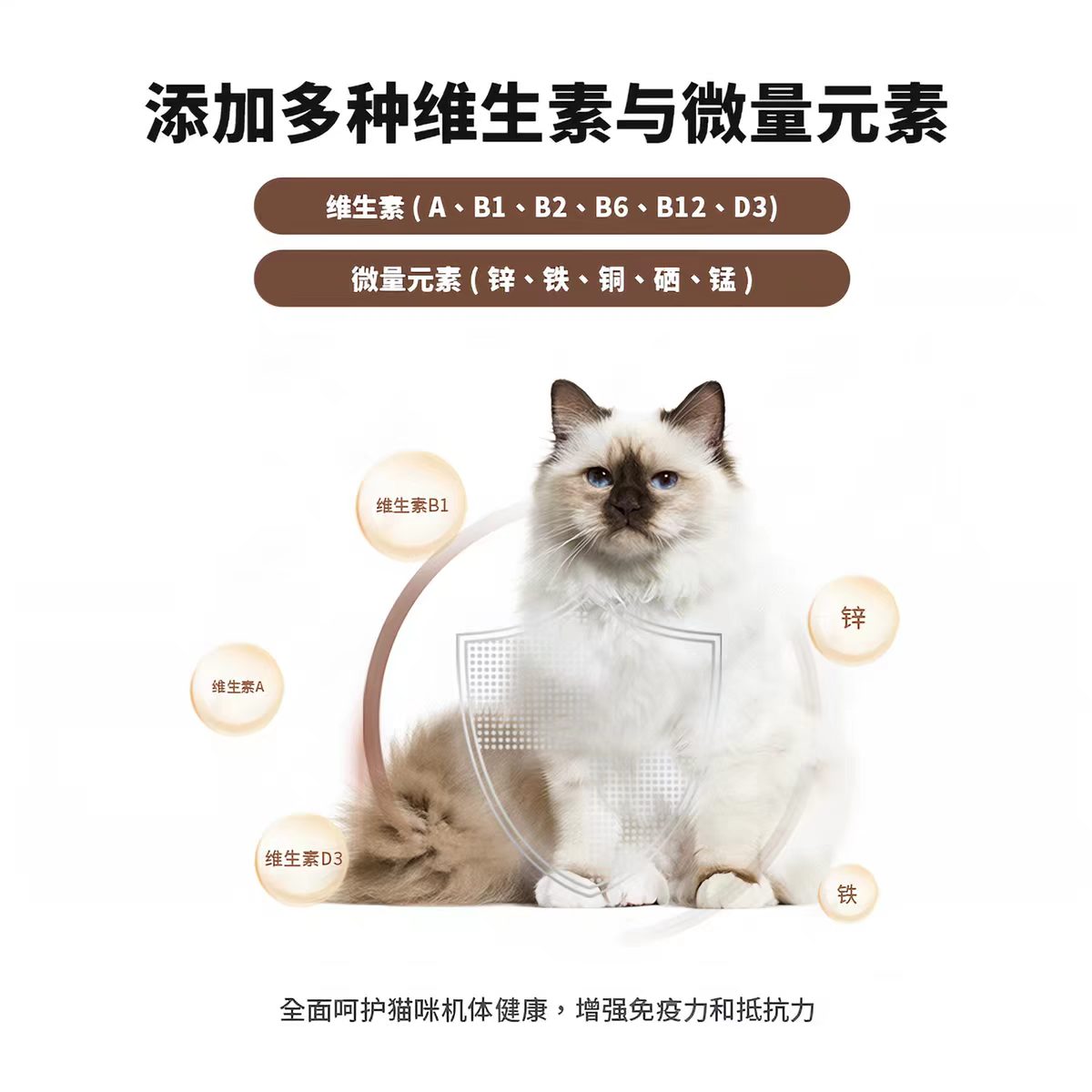这款猫粮最大的特点,就是超高的鲜肉含量和优质的动物蛋白配比,它的新鲜鲜肉占比高达80%,动物源成分占比超过90%,粗蛋白含量稳定在42%以上,而且这些蛋白,几乎全部来自于新鲜的鸡肉、鸭肉、深海鱼肉等优质动物源,没有添加任何植物蛋白来拉高粗蛋白数值,完全贴合猫咪的专性肉食天性。对于猫咪来说,只有优质的动物蛋白,才能被高效吸收利用,无论是幼猫的生长发育,成猫的日常维持,还是毛发的合成,都离不开充足的动物蛋白,这款猫粮的高蛋白配方,不仅能满足猫咪全年龄段的营养需求,更能从根源上杜绝因为蛋白摄入不足导致的毛发干枯、易断、大量掉毛问题。