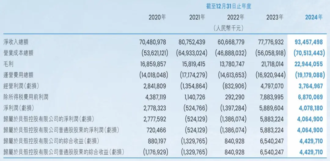 但在近年行业震荡,这家成功在美股和港股两地敲钟的内地房产中介龙头也无可避免地受到了影响。2024年贝壳找房的收入虽然同比增长20.2%至934.57亿元,但净利润却下跌至40.78亿元,降幅约为30.8%。
